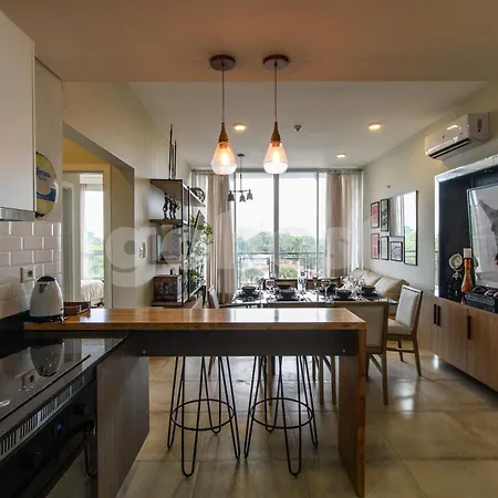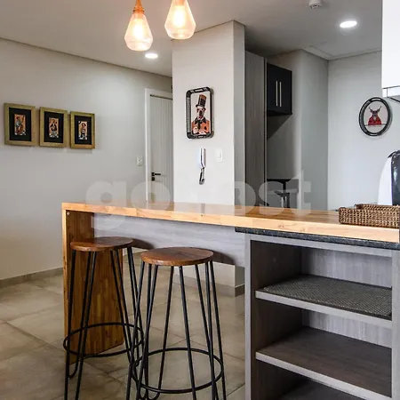 Chic Apartment 600 M From Shopping Del Sol includes self-catering facilities, such as a full kitchen with an oven. Silvio Pettirossi International airport is at a distance of 10 km from the apartment. Offering a terrace, the property also has a private swimming pool.
